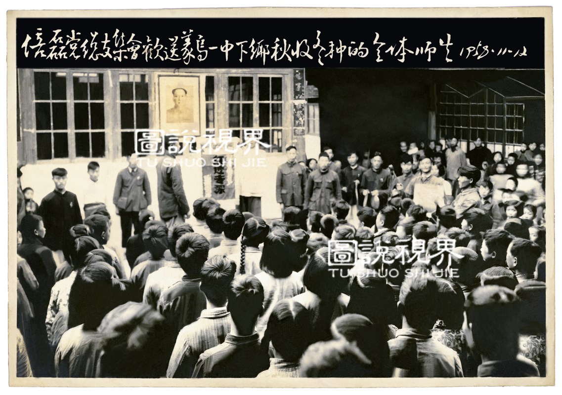 1958年倍磊党总支集会欢送义乌一中下乡秋收冬种的全体师生