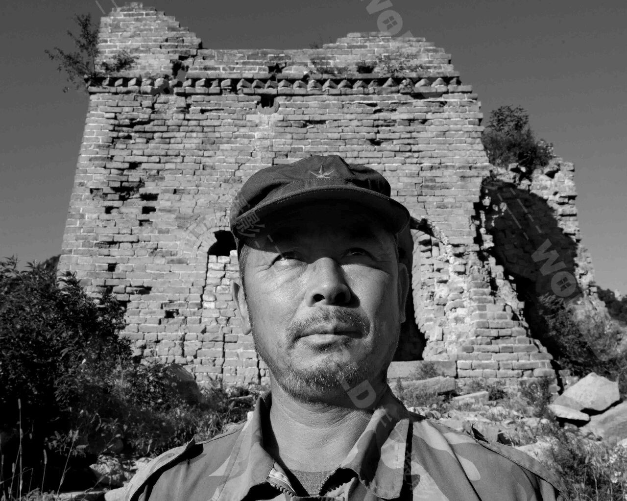 许长福,他的祖先是义乌江东街道许宅村人,现住河北省抚宁县驻操营镇板厂峪村。许长福是一名长城保护员,他带着我们上了以“陡”和“险”著称的倒挂长城。在半山腰,我们看到一个敌楼全塌了,倒在山坡上。许长福说那是因为敌楼上的植物长得太茂盛,树根把整个敌楼顶垮了。长城上一定要有人多走动走动,这样,那些植物才不会长得太疯狂。也就只有许长福,每天带着一把防身镰刀、一只装垃圾的麻袋,在30平方公里的土地上,穿行于67个敌楼,无论刮风下雨,几十年如一日在长城上巡视,从不间断。